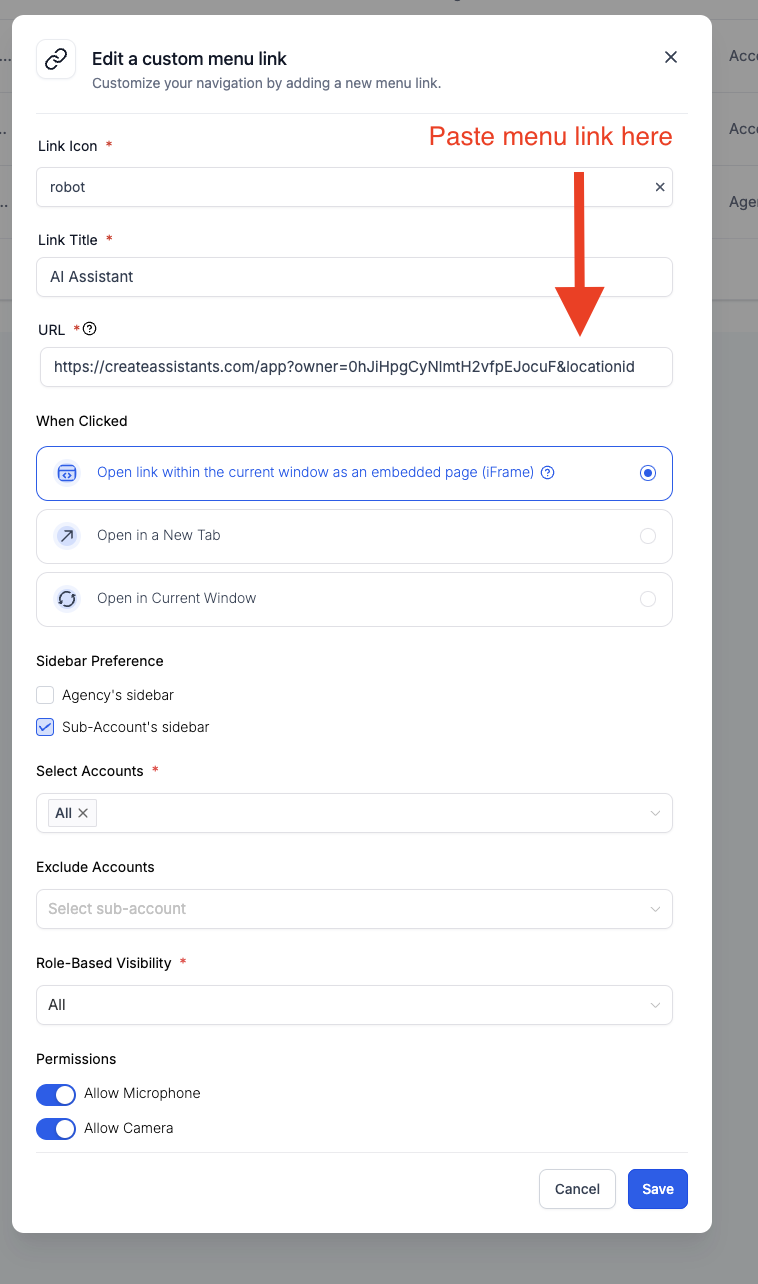 ‼️‼️ Make sure to create custom menu links for: