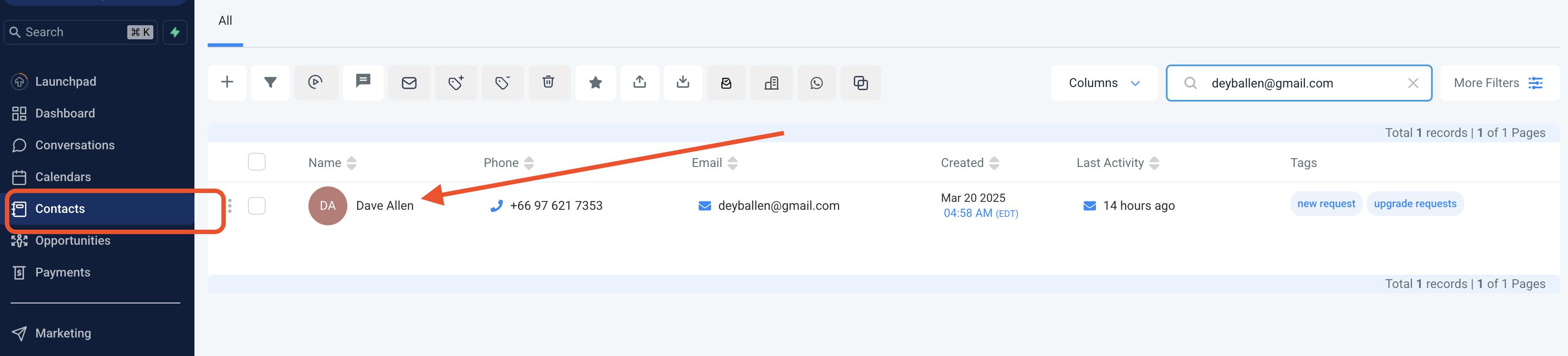 > Go to Contacts and Look for the client