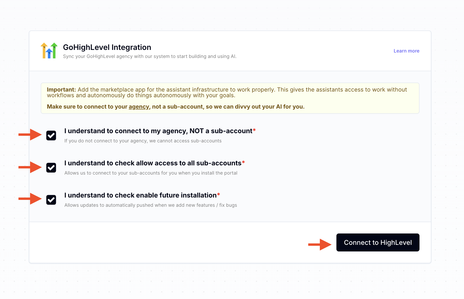 Set Limitations to "9999999" (skip if option 1 is completed - Proceed to Connect Client's GHL Agency)