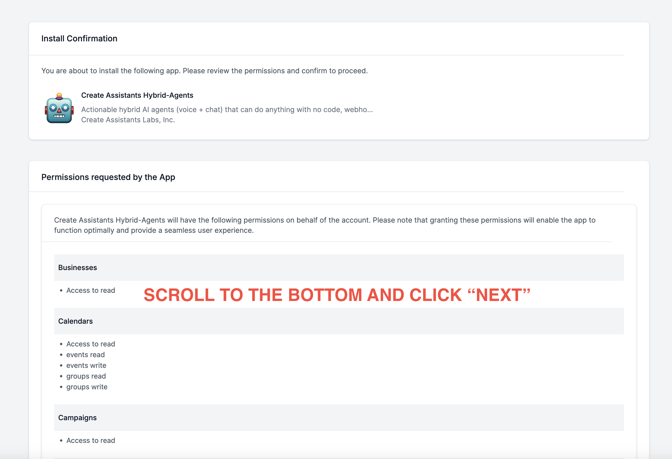 You'll be brought to this page. Make sure to Scroll down to the bottom and click "NEXT"
