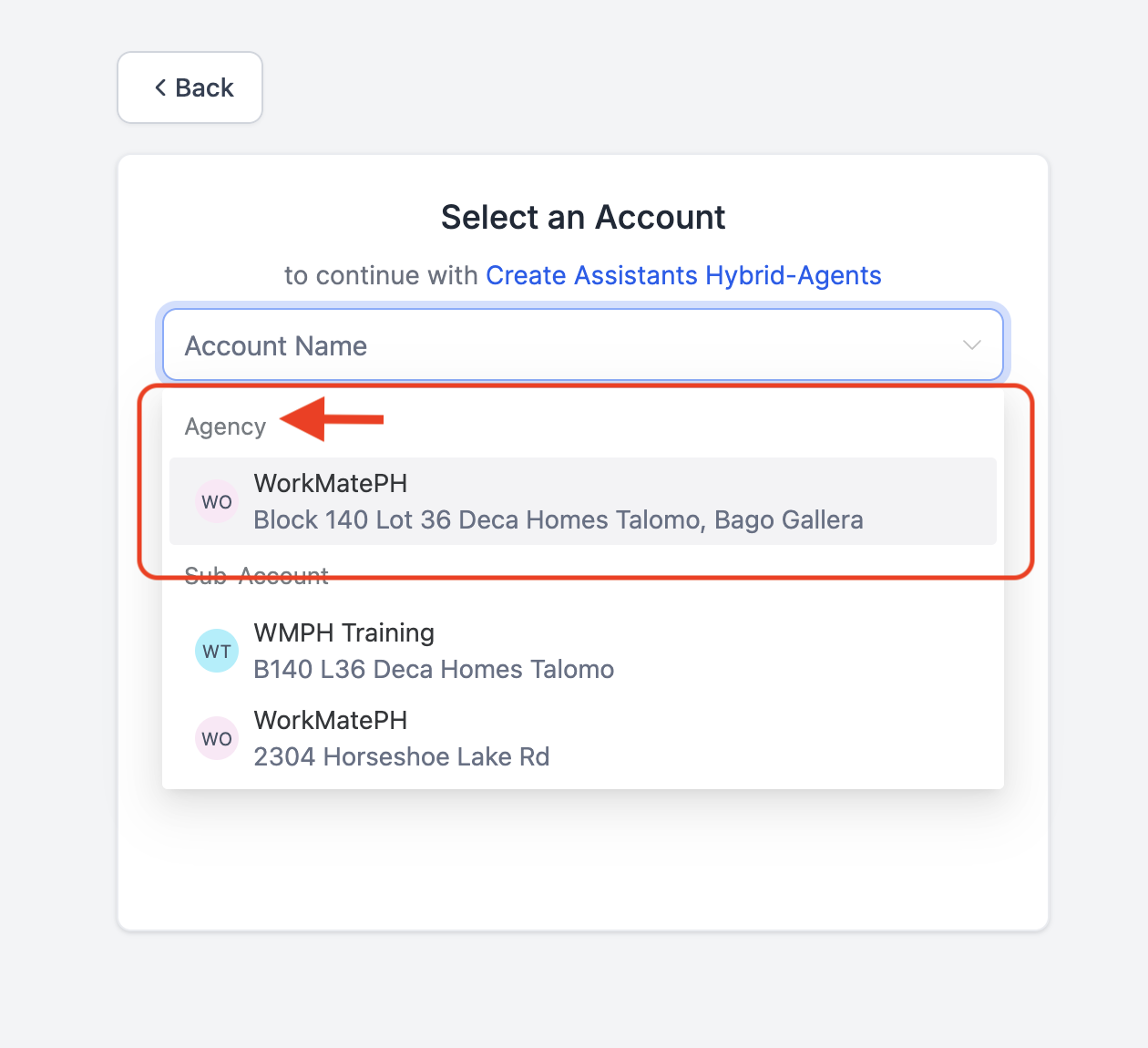 1. Locate the worspace [Account]