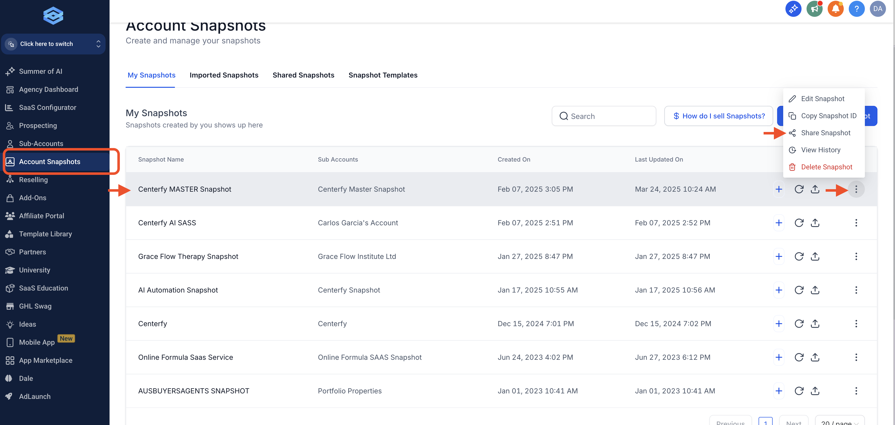1. Click on Account Snapshots