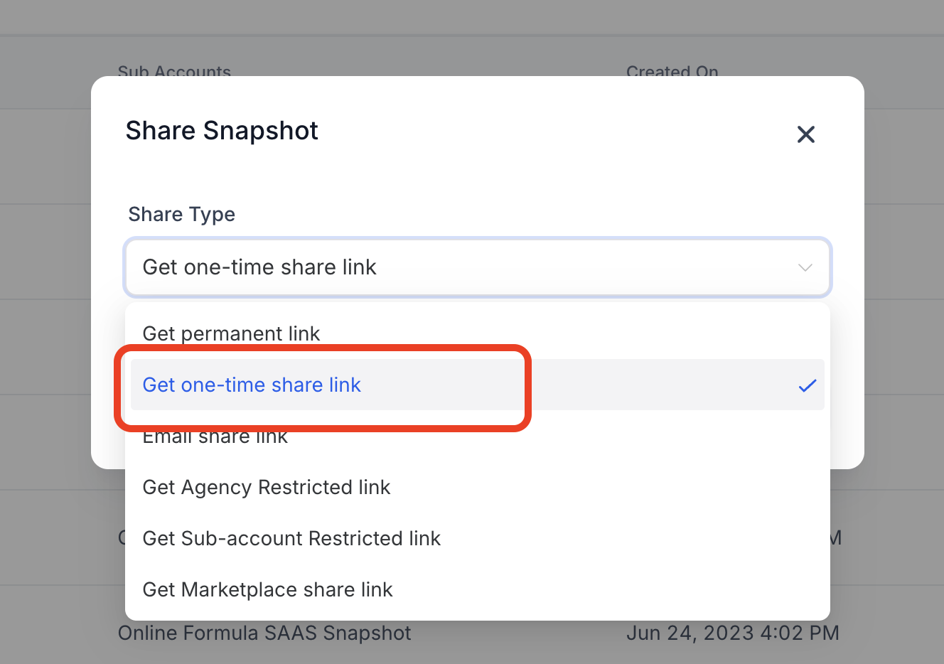 1. Select "Get one-time share link